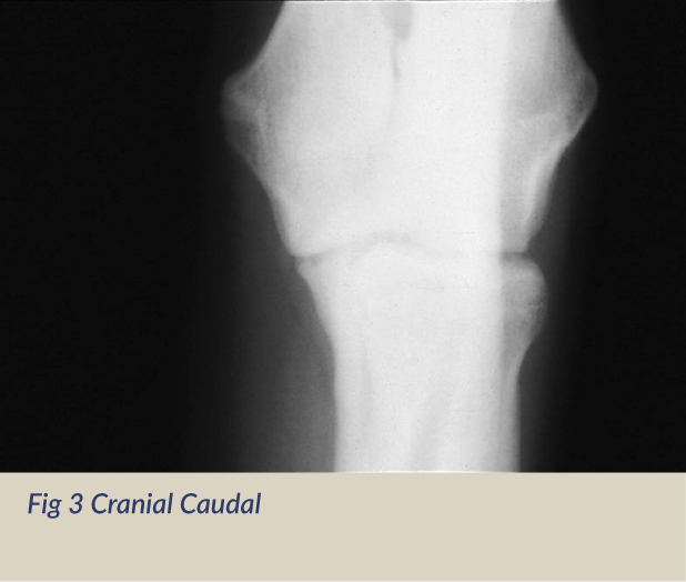 The International Elbow Working Group (IEWG), a consortium of experts from around the world was founded in 1989 to lower the incidence of elbow dysplasia by coordinating worldwide efforts. The diagnosis of elbow dysplasia is based on the presence of degenerative joint disease/osteoarthritis which results from an ununited anconeal process, osteochondrosis or a fragmented medial coronoid process. The OFA started its elbow database in 1990 using a modified protocol of the IEWG. For cost effectiveness and mass screening, the OFA requires the extreme flexed medial to lateral view (Fig 1) of each elbow. Inclusion of additional views such as the neutral medial to lateral (Fig 2), cranial caudal (Fig 3) or preferably the cranial caudal 10-15 degree lateral to medial oblique (Fig 4) can also be submitted and will be evaluated.